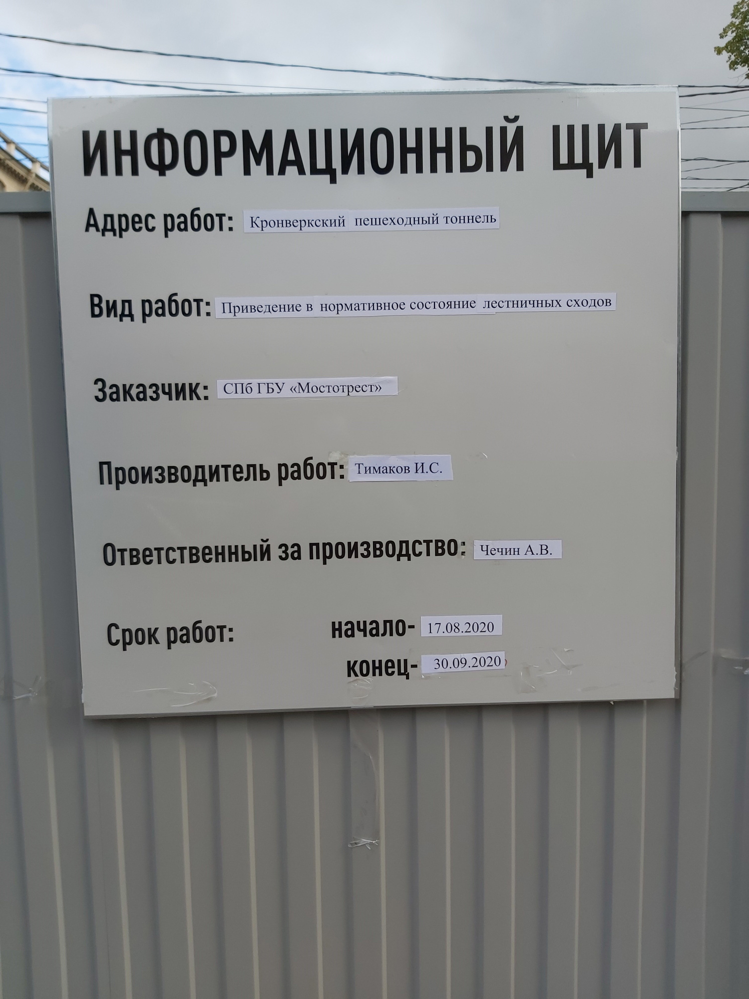 Период проведения работ